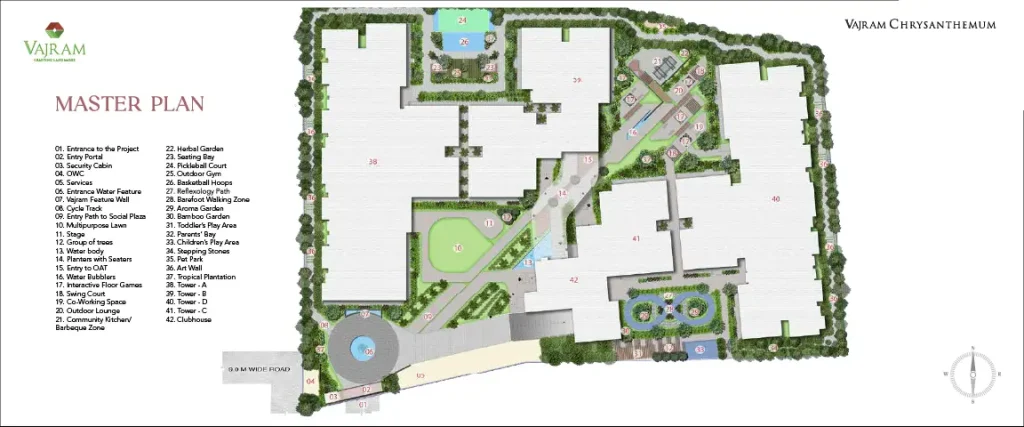 Vajram Chrysanthemum is just started by Vajram Group; for those who seek elegance without excess — a place where architecture flows with nature, and every detail invites calm. Here, boutique living means fewer neighbours, more privacy, and spaces that breathe Vajram Chrysanthemum is for those who seek elegance without excess — a place where architecture flows with nature, and every detail invites calm. Here, boutique living means fewer neighbours, more privacy, and spaces that breathe. These 3 and 3.5 BHK (2238 sft to 2630 Sft) residences are designed as a return to intentional living, where form follows feeling and your home becomes a frame for the life you truly want. having UDS of 52 % of SBA.